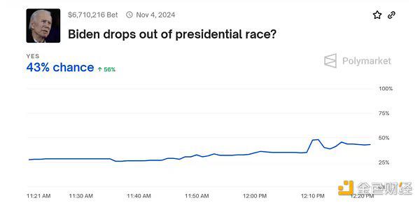 据Polymarket称,拜登成为民主党候选人的可能性不到70%,加州州长加文·纽瑟姆的可能性高达17%,米歇尔·奥巴马的可能性高达7%。