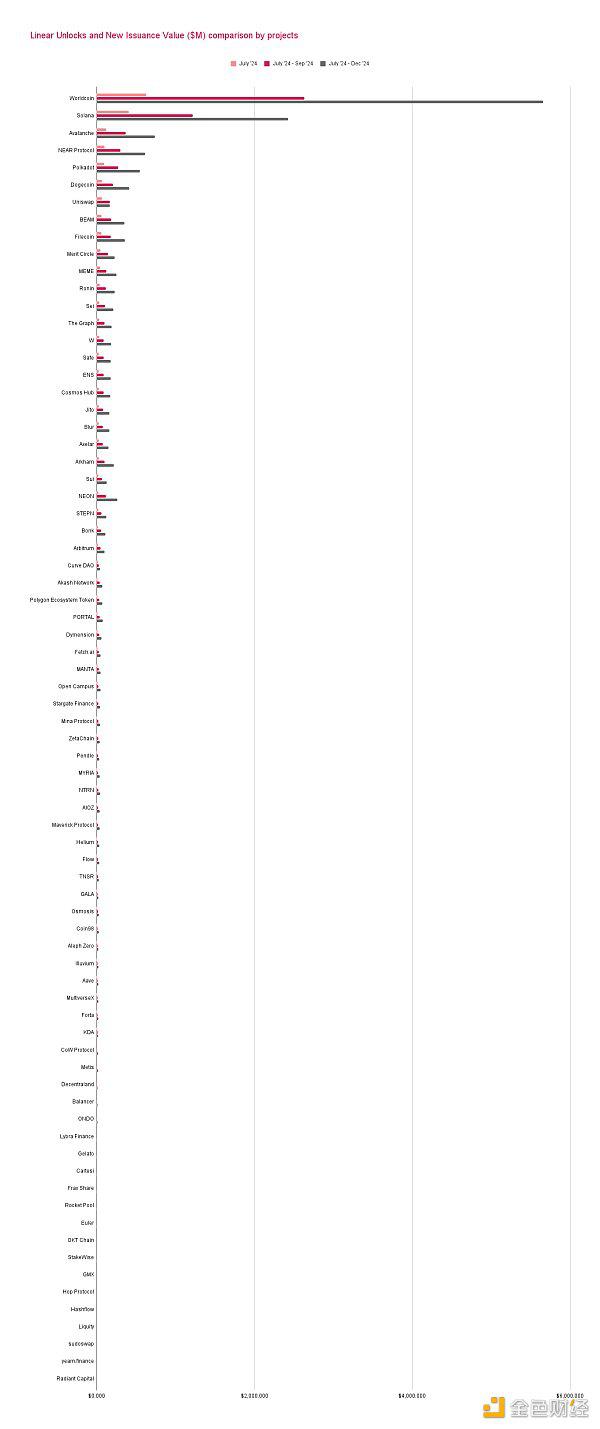 除了线性解锁值最高的前 15 个项目外,另外三个项目因其显著的解锁规模而脱颖而出: