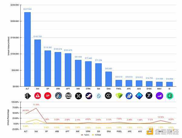 $ALT 本月解锁金额较大,解锁金额占当前流通供应量的近 45%。