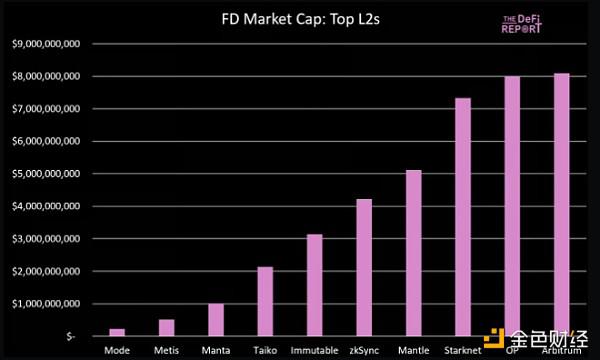以下是顶级 L2 的完全稀释市值: