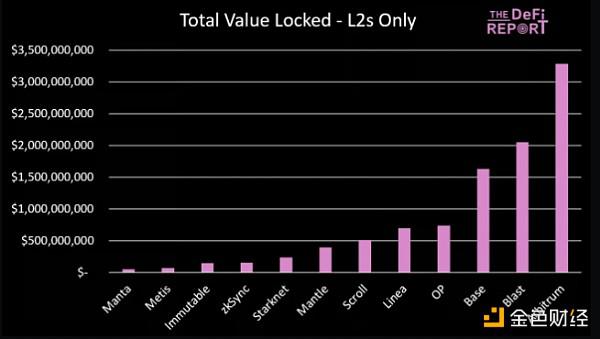 以下是 L2 中的 TVL 排行榜: