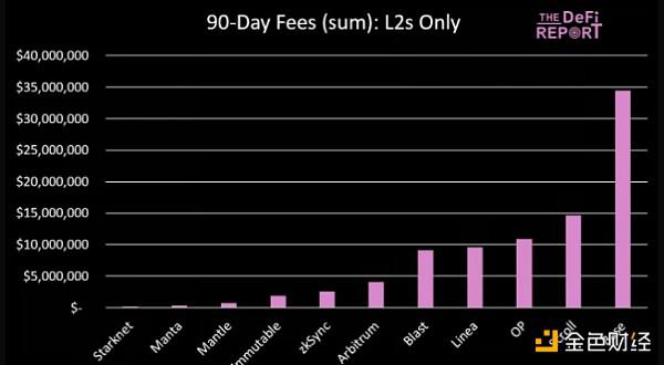 前 11 个 L2 的费用占以太坊在过去 90 天内收取的费用的 15%。