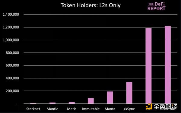 L2 组合仅占以太坊目前代币持有者的 2%(请注意,4 个顶级项目尚未拥有代币:Base、Blast、Linea 和 Scroll)。