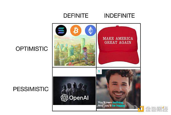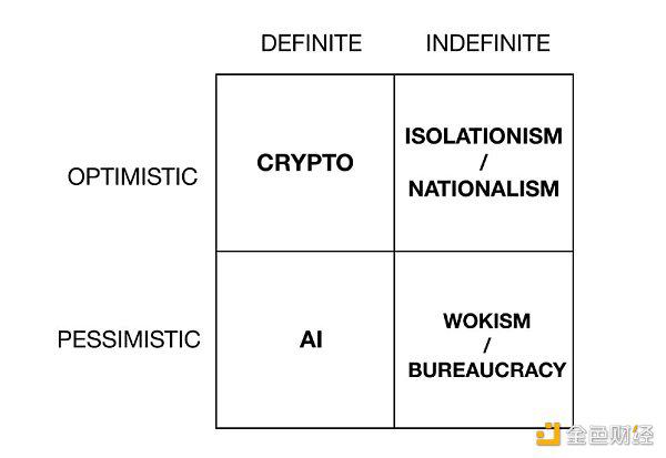 多年来,我一直在脑海中保持彼得·蒂尔的简化版乐观主义与悲观主义2x2框架。当你有一把锤子时,一切皆有可能。