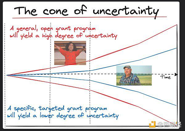 管理混乱: 当前的赠款计划让人不知所措。成千上万的申请、模糊的参数和松散定义的目标,使人们几乎无法理解哪些应该资助,哪些不应该资助。 负责审核的代表们几乎要全职工作(大多没有报酬),这会影响他们正确判断的能力。这可能导致代表们倾向于支持他们熟悉的项目,或者被“安利”过的项目,而不是去研究新的提案。