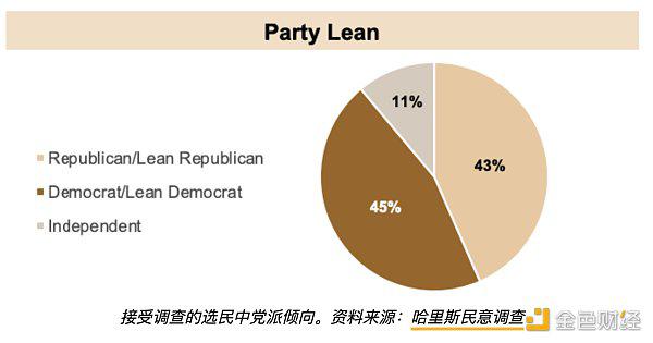 这些选民在政治上几乎持平,43% 的选民倾向于共和党,45% 的选民倾向于民主党。