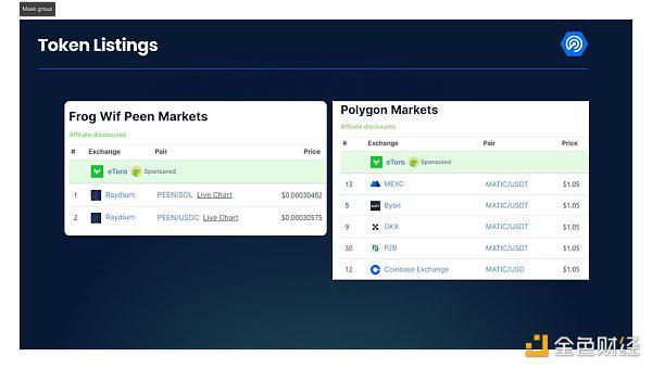 然而,只在DEX上线的代币是一种风险更高的投资,你更有可能遇到的是骗局。下图左侧是一个只在DEX上使用的代币,而右侧是一个可以在多个CEX上使用的代币。