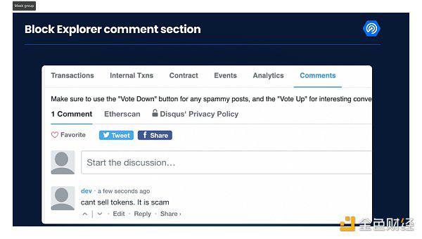这部分非常简单,各区块浏览器上通常都有一个评论板块。大多数时候没有评论,但如果一个项目是骗局,你可能会在评论区发现一群愤怒的人士。所以一定要点击查看。如果有人说这是骗局,那99%的可能性就是骗局。如果你是这个项目的受害者,请也留下评论。